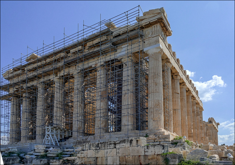 Po ostatecznej klęsce Persów, w połowie V w p.n.e przystąpiono do odbudowy Akropolu. Pod kierunkiem Peryklesa powstał śmiały pomysł wybudowania na wzgórzu 12 świątyń, które miały być wyrazem wdzięczności Ateńczyków za odniesione zwycięstwa. Za prace odpowiadał ateński rzeźbiarz Fidiasz, a pomagali mu architekci Mnesikles, Iktinos i Kallikrates. To wtedy na Akropolu powstały monumentalne budowle, m.in. Partenon, Erechtejon, Propyleje i Świątynia Ateny Nike, które do dzisiaj, mimo upływu dwóch i pół tysiąca lat, wciąż podziwiają miliony turystów z całego świata.