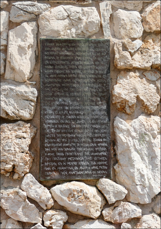 W 1938 roku na zboczu wzgórza, umieszczono brązową tablicę zawierającą grecki tekst mowy Apostoła. Przy tej tablicy 4.III.2001 r., podczas pielgrzymki do Aten, spotkał się Jan Paweł II z prawosławnym patriarchą Kościoła greckiego, Arcybiskupem Aten i całej Grecji. Obaj wspólnie modlili się w tym miejscu o pojednanie wśród chrześcijan i o pokój na całym świecie.
