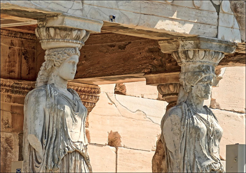 Kariatydy to jeden z symboli Akropolu. Niestety, to co widzimy to kopie, żeby zobaczyć oryginalne rzeźby, trzeba udać się do Muzeum Akropolu, w którym znajduje się 5 z nich. Szósta znajduje się w British Museum.