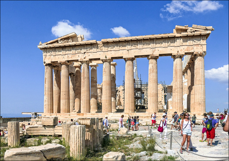 Dość wczesnym porankiem, zaopatrzeni w butelkę wody mineralnej, zmierzamy na szczyt Akropolu. Latem pobyt na wzgórzu w godzinach południowych jest niewskazany. Bywa nawet, że w porze największych upałów Akropol jest zamykany.